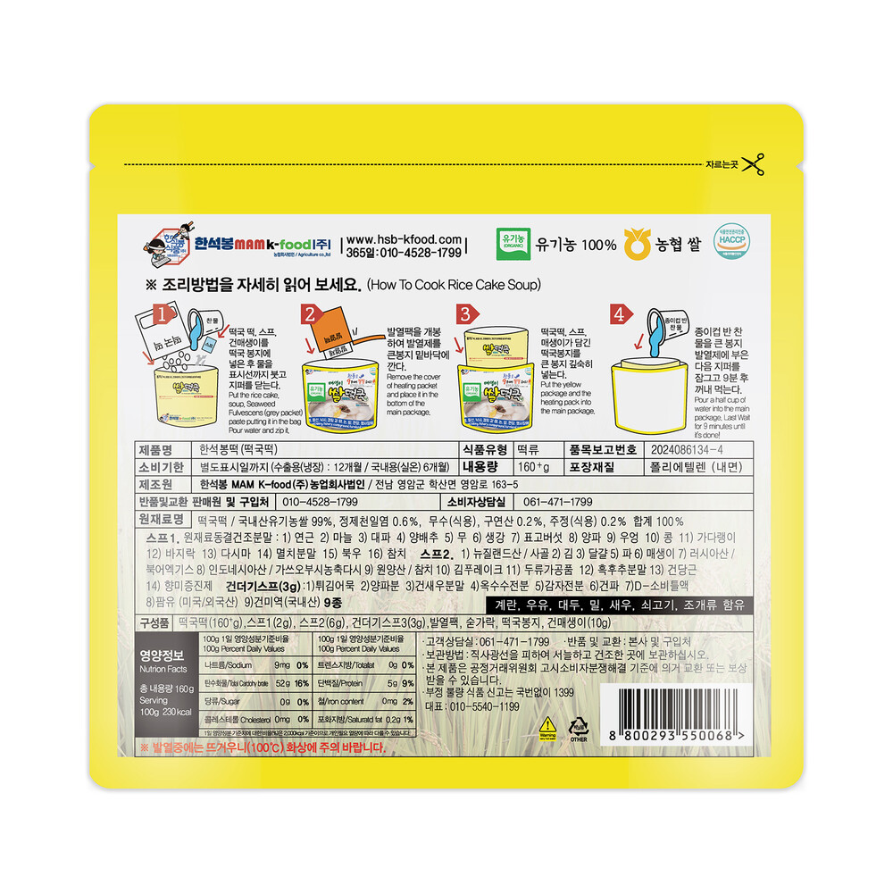 100% 국산 유기농 쌀로 만든